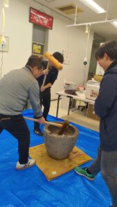 業務においても、この餅つきの事を忘れず息を合わせてやっていきたいですね。